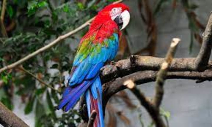 Scarlet macaws are large parrots with blue, red, and yellow plumage. They have the honor of being the national bird of the Honduras. They make their home in Central and South America. Their tails are very long over half of their length.