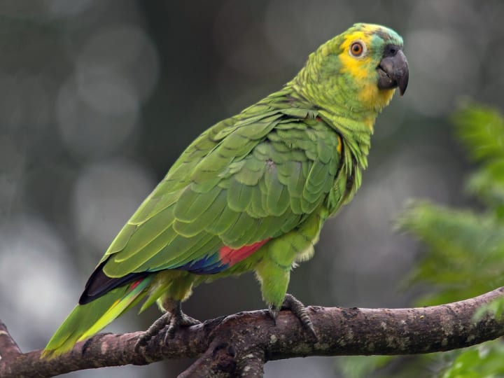 Turquoise-fronted Amazons make their homes across Argentina, Bolivia, Brazil, and Paraguay. They have light blue feathers on their foreheads while their bodies are green with yellow around their eyes. Their habitat is the tropical and subtropical forests.