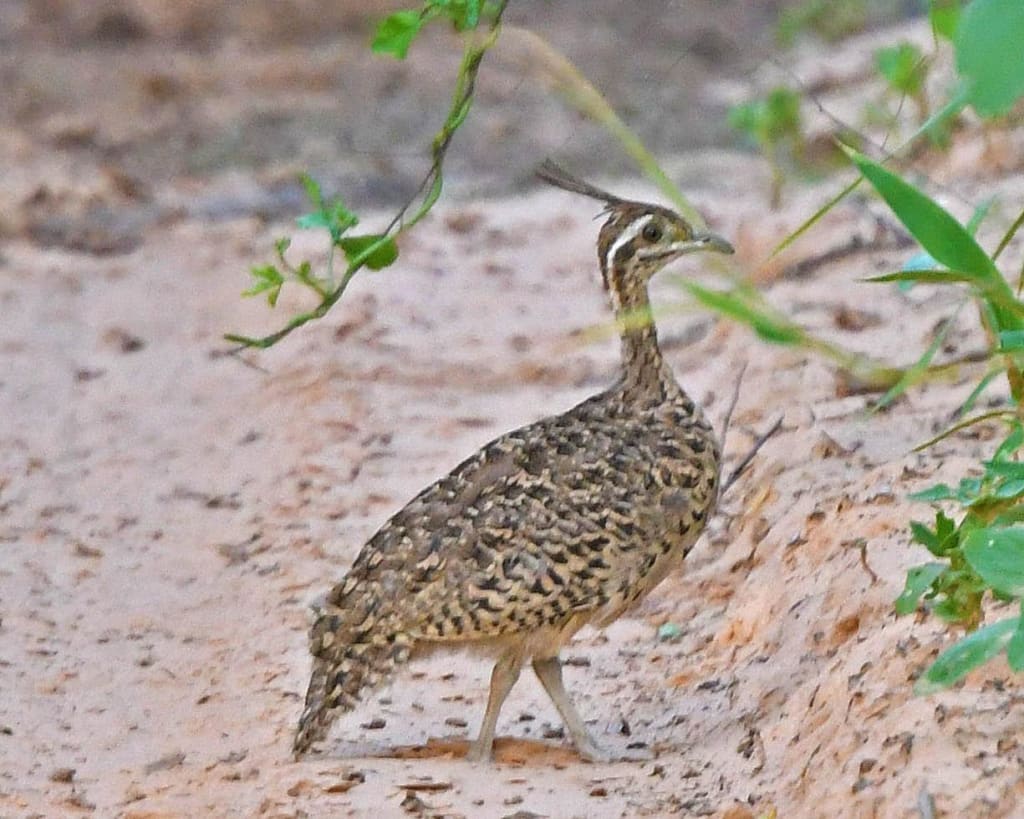 Quebracho Crested-Tinamou is an endemic Chaco that is restricted to a small region in west Paraguay, southeastern Bolivia that is northern Argentina, where thick thorny woodland and surrounding savanna occur in arid regions. Biology of this species is little known but early observations on the field suggest significant distinctions between it and the more widespread and well-studied Elegant Crested-Tinamou with which it forms a superspecies. Mostly in browner dorsal colouration, bolder breast marks and less heavily coloured underparts it varies from the species. Sub-specie E. f. Mira, described for the Paraguayan population, is dubiously valid and most modern authorities consider the species monotypical. It is not currently recognised whether Quebracho Crested-Tinamou is under any threat to life, but increasing habitat loss within the species range indicates that it may qualify for an endangered status in the near future. Tinamous are stormy, with very short tails, small legs, and rounded wings. The two crested-tinamous species (Eudromia) are large tinamous with a long thin crest on the back of the crown, and just three toes (the hallux lacquer). Sprinkled with cream, Crested-Tinamou Quebracho has greyish brown to blackish upper parts. The underparts are often whitish to light buffy, lined, and vermiculated with grey. There is also a long whitish line starting at the base of the bill and continuing past the eye and down the leg of the body. Brushland Tinamou is the most potentially confusing species in the region over most of the Crested-Tinamon Quebracho range. Yet Brushland Tinamou is usually solitary (as opposed to the social Quebracho Crested), lacks a banded head pattern and has a black topknot, not a small, fluffy crest. The superficially similar Elegant Crested-Tinamou is allopatric because this species extends the range of the northern subspecies magnistriata in Santiago del Estero. Short compared the two and distinguished Quebracho Crested by being whiter ventrally, with a stronger barred upper breast bound by dark shaft streaks and with a browner dorsum exhibiting delicate vermiculations, many bands and large buff spots as opposed to grayer with smaller, more regular spots in magnistriata. Formosa's outer primaries on the inner vane are unbarred, or generally display subtle barring signals, while magnistriata are heavily barred primaries. The adult has a thin crown, like a beard, with flat, short black feathers. Grayish brown on top and vinaceous buff on the bottom, more or less heavily mottled and vermiculated black with occasional ochraceous spotting and neck-and-rump freckling. Crown, hind collar, malar, and deep ochraceous brown auriculars, streaked with black shaft stripes. Broad white lines stretch above and under the auriculars and spread to the sides of the neck. Grey-faced. External primary fuscous with external webs notched uniformly with immaculate buffy-white and internal webs, or indistinctly spotted or vermiculated with buff. Near main interior except the internal chains of scattered ochraceous vermiculation. Ochraceous to medium vinaceous, grey foreneck and chest with black sagittate marks on the breast and arms increasing in size and strength. Abdomen, crissum, creamy-white to ochraceous-buff on the sides and flanks. The diet of Quebracho Crested-Tinamou is unrecorded, but birds appear early in the morning and late in the afternoon on roads where they can be seen picking on substrates in the manner that Bohl defines for Elegant Crested-Tinamou. The items they bring are not clear to the naked eye, but it is understood that Elegant Crested drinks grit every day, and this is an analogous activity indeed. Elegant Crested-Tinamou, which grows further south in similarly arid conditions, metabolically serves its water requirements from the plant matter in their diet and the same may be true for this genus. Vocalizations take place all day, most frequently early in the morning and late in the afternoon, frequently beginning before sunrise and continuing until sunset. The animals sometimes sing all night long.