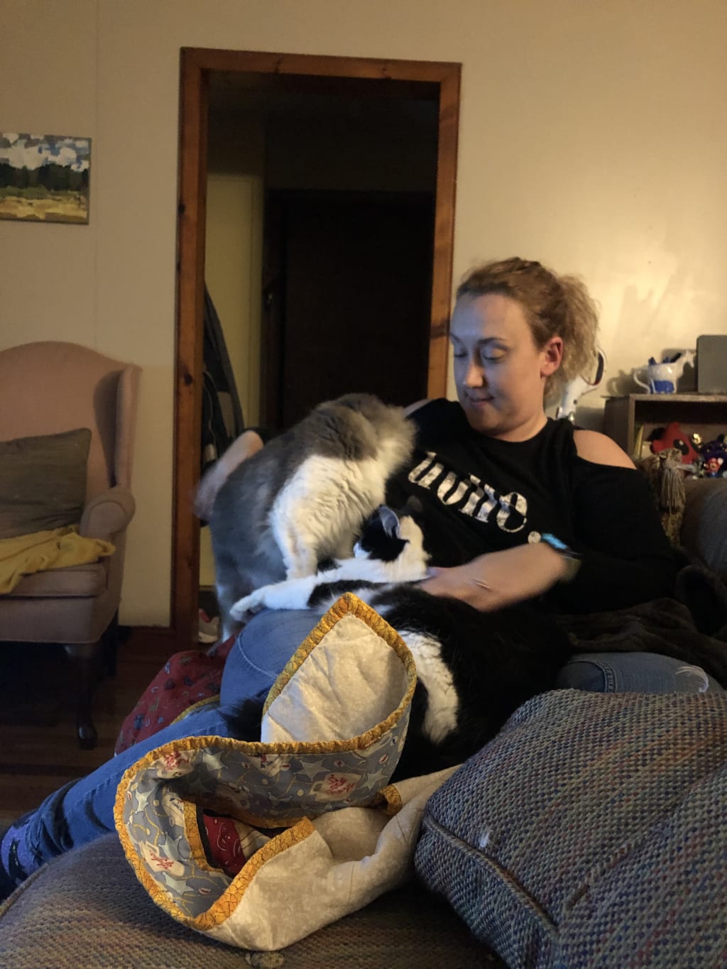 From the very start of the sit, we felt at home. We met our employers and they left the next morning, leaving us with their home and their kitties to care for and love. Momo, the youngest of the trio, warmed up to us right away, but Puffin and Wicket took a little longer. Puffin became my BFF and would cuddle with me most any chance he got. Wicket finally stopped hissing at us after a few weeks and decided to let us love her, too. These kitties will always have a special place in my heart.