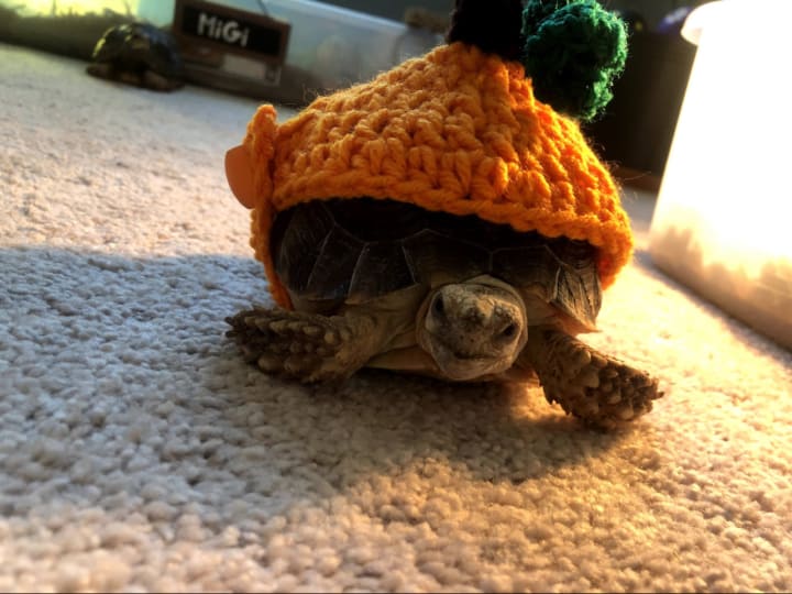 Around Halloween, I always love to come up with costumes that perfectly suit the personalities of all 3 tortoises I own. It’s a task that is both tricky and endearing, with an adorable payout for my scrapbook pictures.