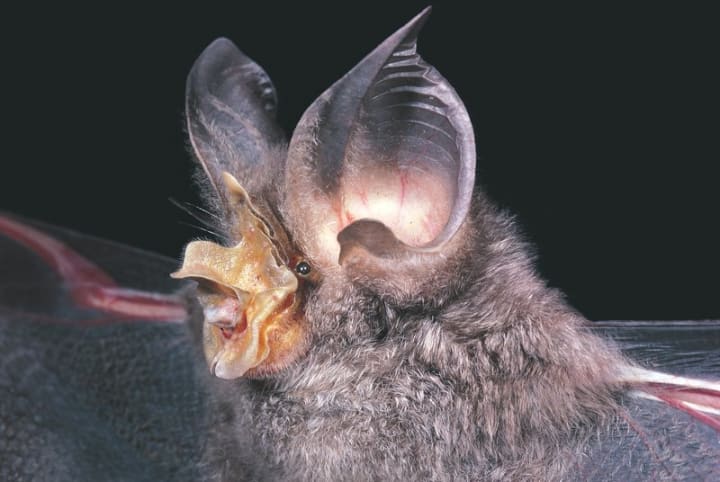 Horseshoe bats have an odd appearance with faces that look more like ears. They are very receptive to sound waves and that lets them quickly navigate through the air. These bats have been named due to the shape of their "noseleaves."