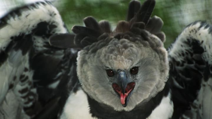 Harpy eagles look like a cross between a cockatoo and a bird of prey. They are one of the most distinctive birds on the planet. They have a wingspan of more than 7 feet in width that helps to carry their 20-pound birds over the rainforest of Central and South America. Their diets include hunting sloths and monkeys.