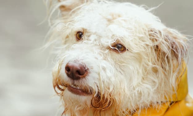 I slammed the door shut, heart racing and fear suddenly blooming large in me. I let out a scream that brought my father immediately to me, his face one-part concern and three-parts contempt for the childish way I’d summoned him. I pointed at the door and trembling uncontrollably I said “Dad, the dog's not dead. He’s on the back step.”