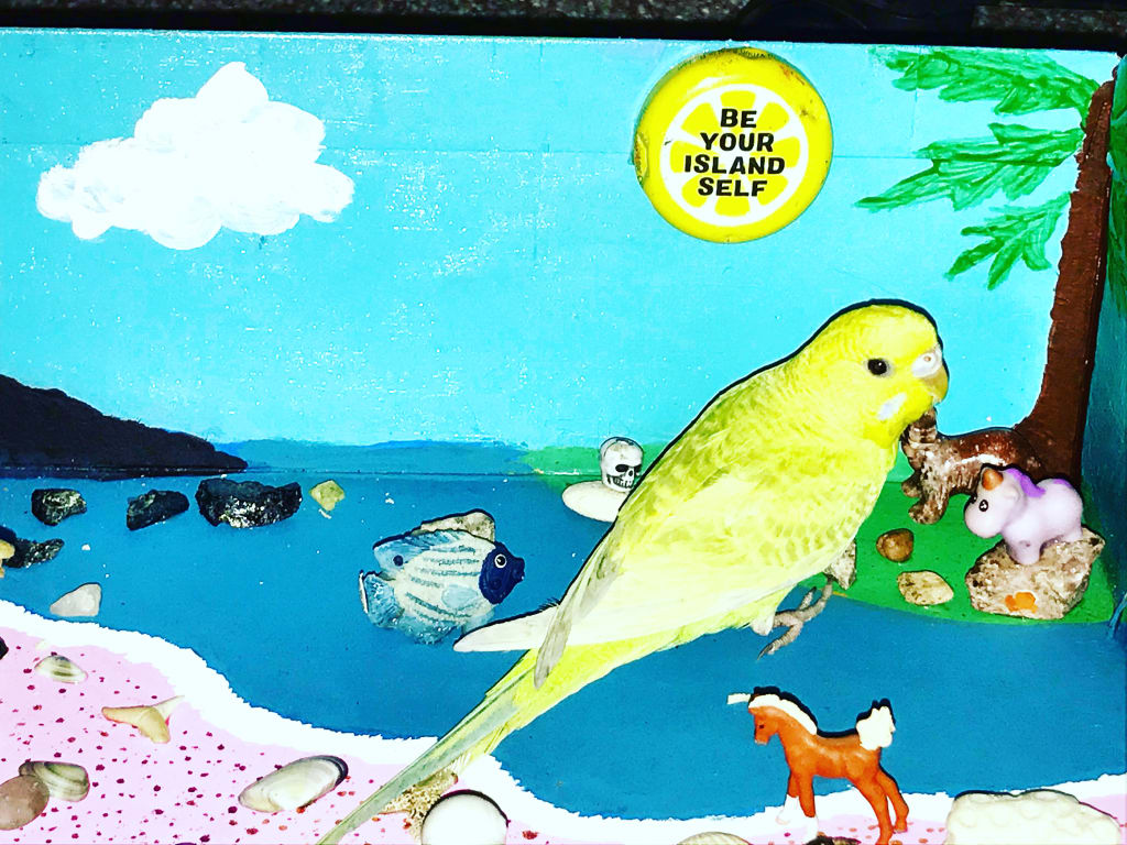 I could not find my parakeet and began to question the unthinkable, but convincing myself that it could not be. I knew that my cat did not eat her. Finding her beneath my fan in the corner between the wall and my bookcase she was hiding injured. This hurt me deeply and I blamed myself for being out as I cried, tending to her and trying to heal her. She subsequently passed away and I knew I eventually had to embark on the adventure to retrieve another. One that was the same so I could play the illusion in my mind like she was never gone.