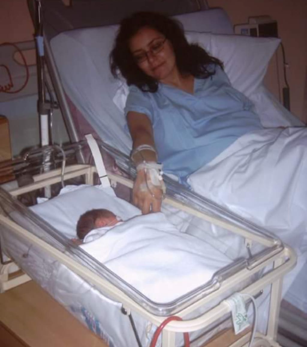 I had gone into labour early, and she was born 8 weeks early, to be exact. We were shuttled from one hospital to another in an ambulance, when the attempts to slow the labour ultimately failed, and the first hospital had no beds available. I was given steroids to strengthen the baby's lungs. Then, I was put under observation to be kept in overnight, and suddenly, at a little after midnight on the 24th May 2010 she went into distress, and I was told I would need to sign papers to be wheeled across to the theatre for an emergency caesarean section. I was terrified. I even asked a nurse if I was going to die. Printouts were flying out of the machine next to me, and several nurses were talking urgently. But I couldn't decipher what was going on.