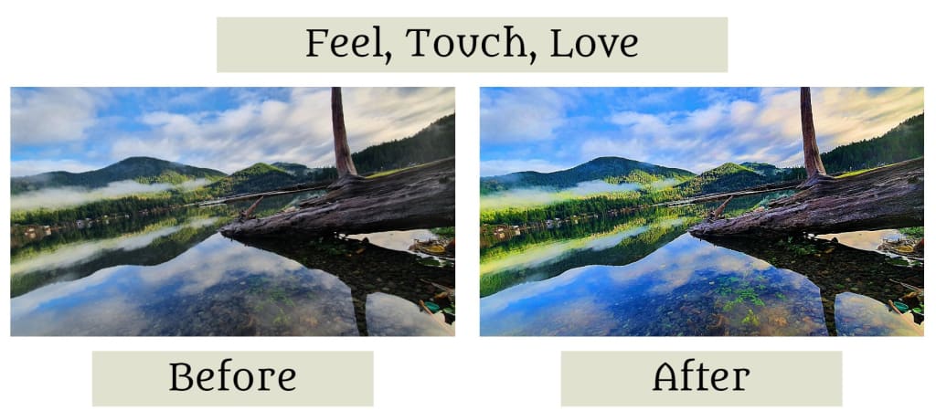 Just a couple more tweaks and we will be done with this beautiful capture of a lovely slice of time. I slid the sharpen setting ever so slightly from 13% to 18%. Just that little bit gave me the reality of the texture of the bark and contours of the rocks under the shallow depth of the shore. It made the sharp edges of the leaves floating on the lake surface palpable and it was like adding the melody to your favorite lyrics. This picture was now much closer to what my mind’s eye remembered of that glorious morning. I instantly recalled the clean smell of the crisp air when I looked at the edited picture. The final tiny edit I made was with the clarity setting. Clarity takes the mid-tones in the image and boosts them, bringing intensity to a photo and increasing the texture. I only moved it from 30% to 24% and this was the icing on the cake. Now the ridged edges of all the foliage appeared and matched my experience. It was a perfect capture.