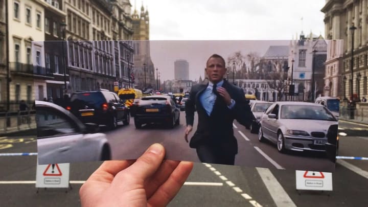 I attempted to capture a specific scene from Skyfall (2012) which takes place in Westminster. The first two shots require on-road access and the next two shots are a 20 minute tube ride away — funny how Daniel Craig runs from Westminster to Tower Hill in mere minutes.
