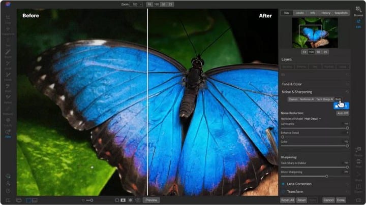 ON1 NONOISE AI is a noise reduction software that uses artificial intelligence to denoise photos. It is one of the latest addition to this best noise reduction software test. When it comes to removing noise in photographs, ON1 NoNoise AI does a fantastic job. It can quickly remove noise and get the sharpest details in your photos with AI-powered NoNoise AI.