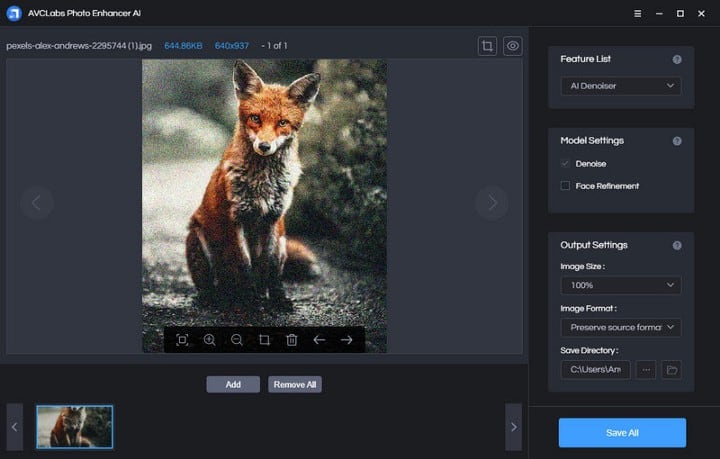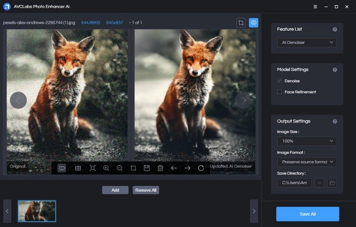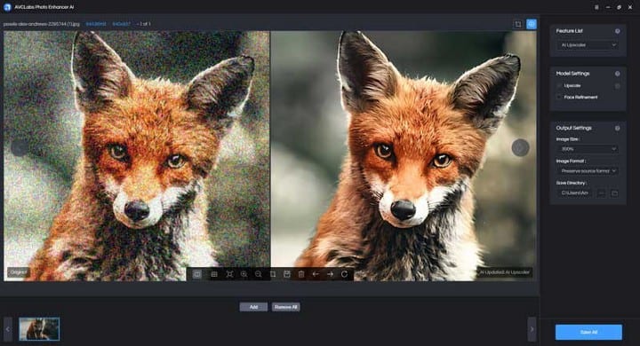 When all settings are done, you can click the “Preview” button to view the result. If you are satisfied with the result, click the “Save All” button to save the upscaled photo to your defined folder.