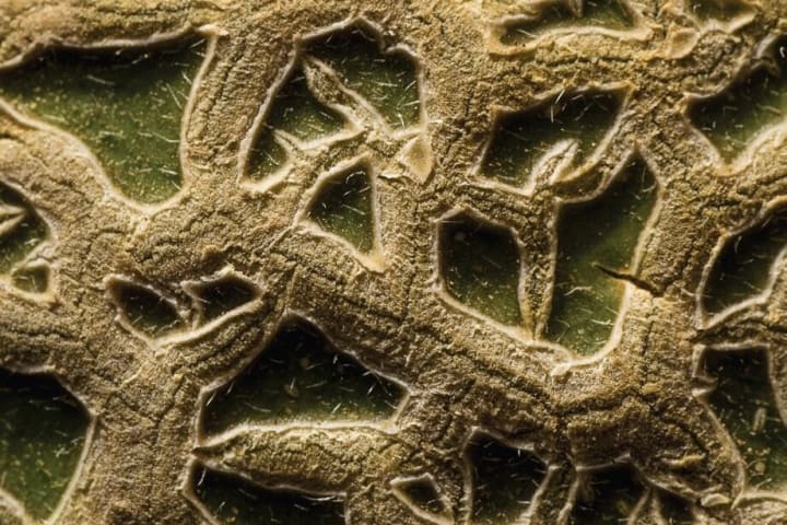 This photograph of cantaloupe fruit skin demonstrates this perfectly. Being able to see the dips and ridges adds to its 3-dimensionality. Its subtle texture is highlighted by the strength and position of the light.