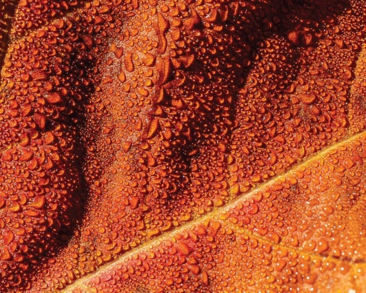 If you're using natural light, try shooting during golden hour when the sun's angle is lower. Just like in this shot of a droplet-covered leaf in early morning light.