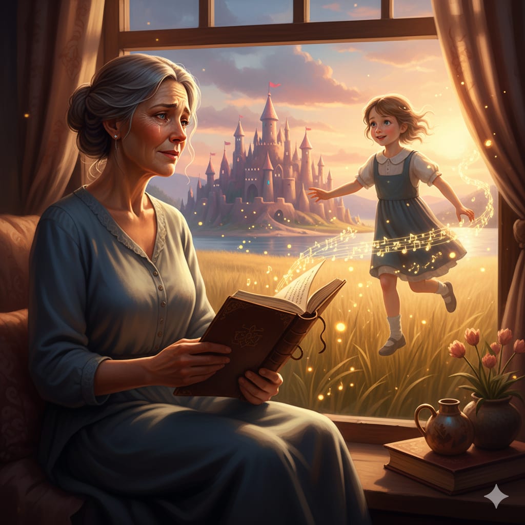 Chasing fireflies in the fading twilight.