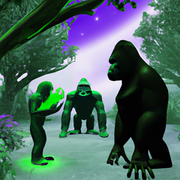 To make the Gorillas not to be afraid of Him He turned into a gigantic Gorilla in green revealing His Alien origin with human emotions and feelings inside