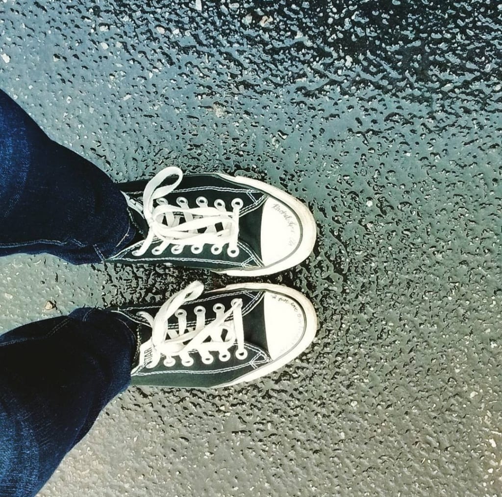 I remember that day we ran in the rain. The asphalt shined in the light downpour. It formed puddles that looked like Dawn detergent had been poured in it--rainbow iridescent.