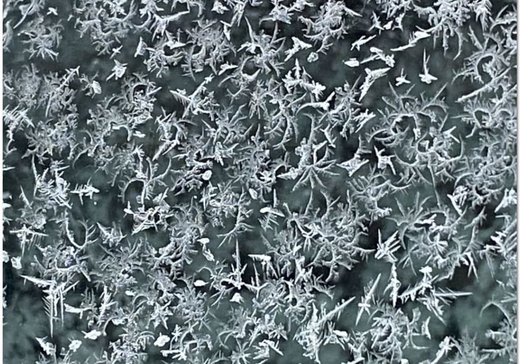 My breath sparkles in the still air,