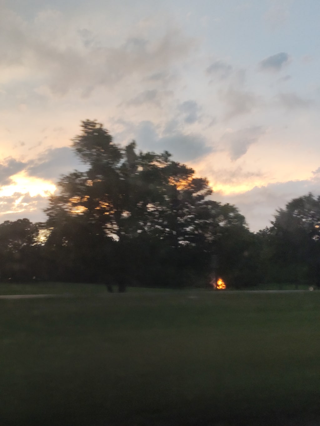 Driving down the road, it's raining. I don't turn on the windshield wipers. I enjoy letting the rain build up on the glass. As I drive, the bigger droplets cut a path through the smaller ones. A small pocket at the bottom of the glass doesn't have any rain on it. The car is making a sound that seems to be air rushing through a crack somewhere on the left side of the passenger seat. It hisses. Almost as if it is coming through the broken windshield.