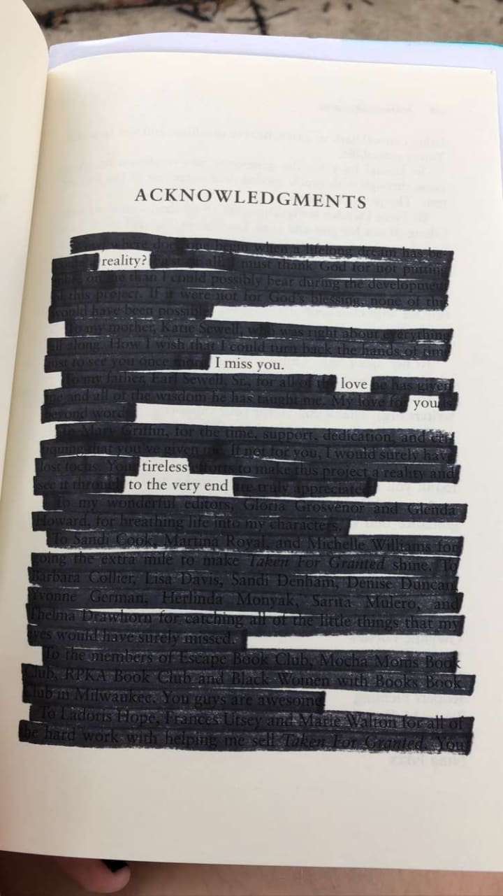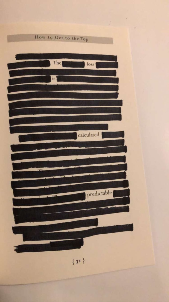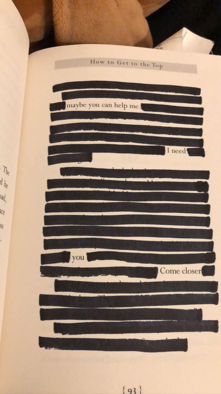 Man, I used to read so much blackout poetry. It really was popular for several years but now it's been ages since I read it. Amazing pieces. This was such a treat to read! My nostalgia is pleased :)