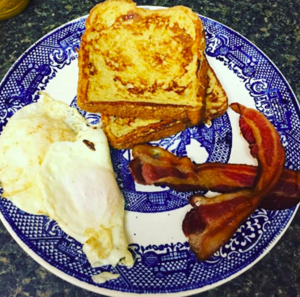 I make red bacon, brown toast, and yellow eggs