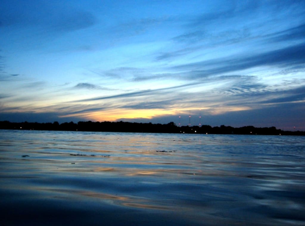 Flickering off the crystal blue waters