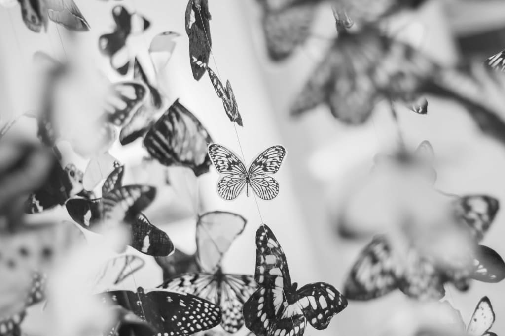 Her features reveal themselves as I step closer, and I’m confronted with a five year old me, with braided hair and butterfly clips galore.
