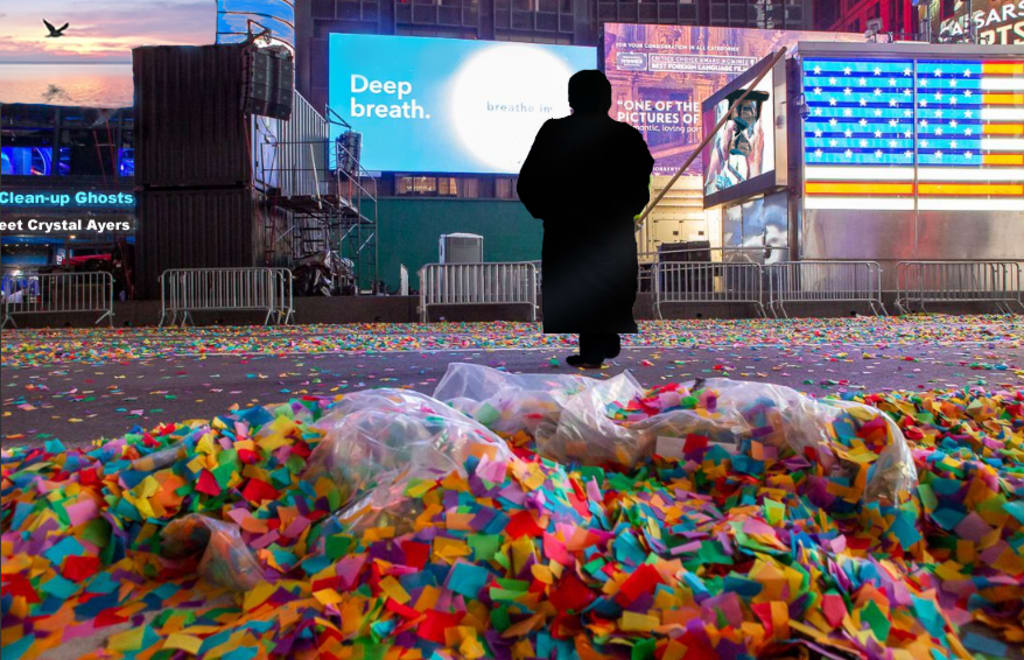 The confetti is settling on the ground, the lights dim