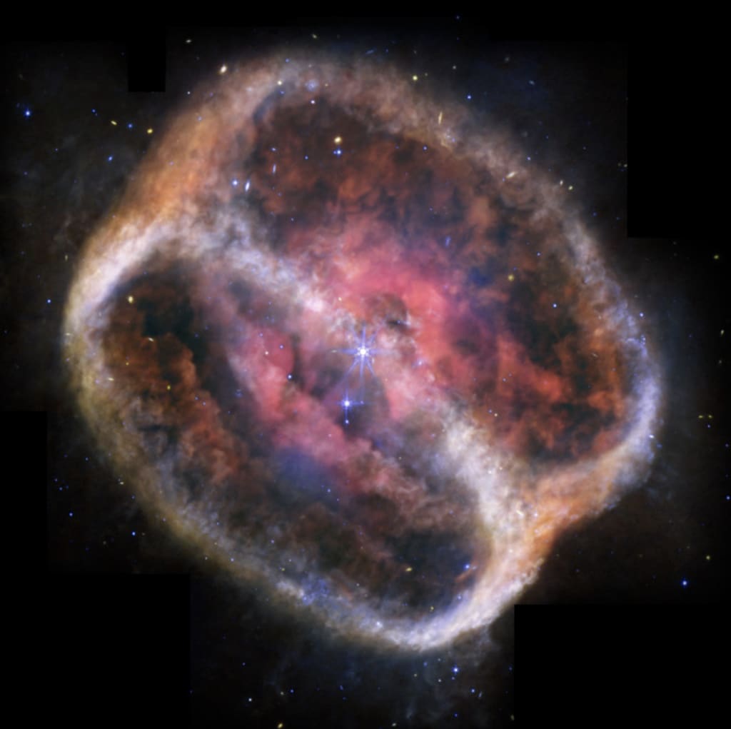 Author's note: I was mesmerized by this image and it made me think about life and death on a cosmic scale. To me, it looked like an open pecan shell with the pink core.