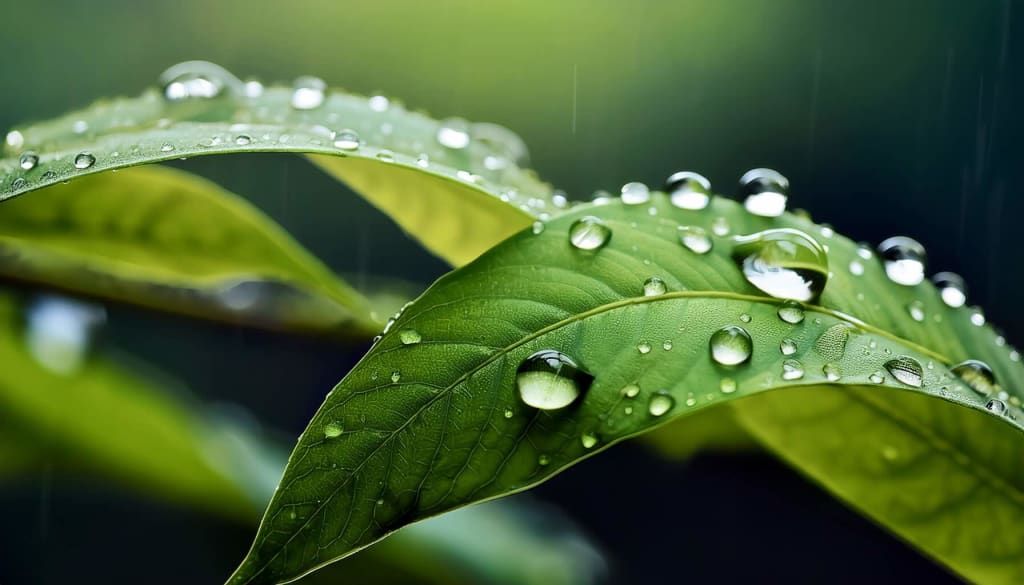 Raindrops kiss the leaves—