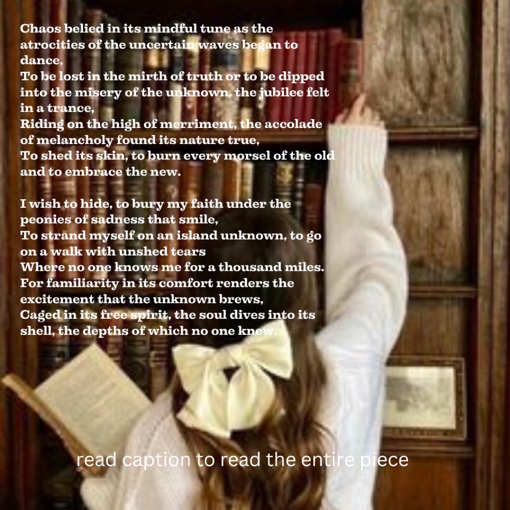 To be lost in the mirth of truth or to be dipped into the misery of the unknown, the jubilee felt in a trance,
