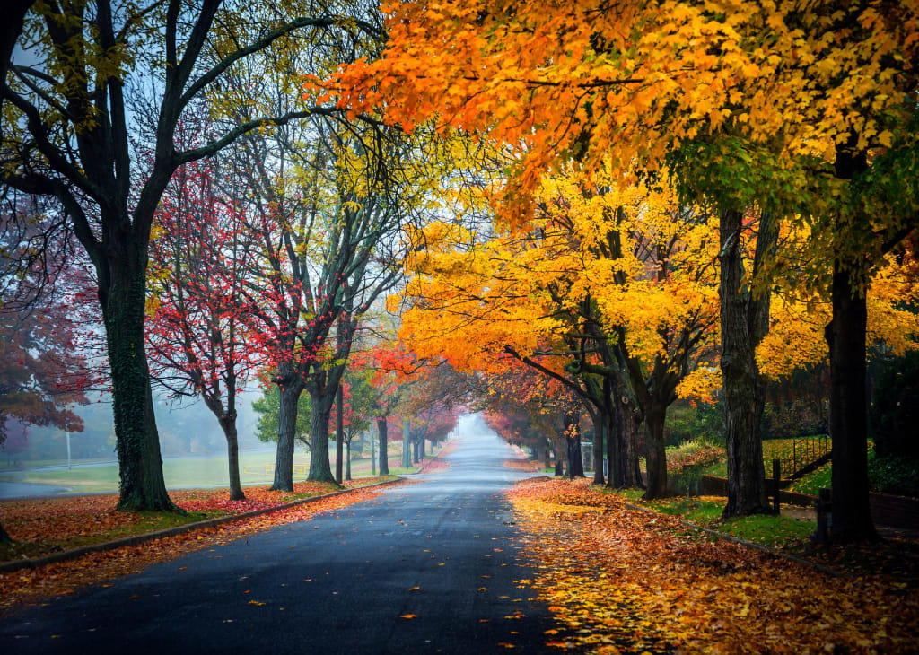 The leaves, red and gold