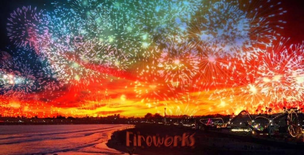 My mind is drawn to festive bursts of fire in the sky