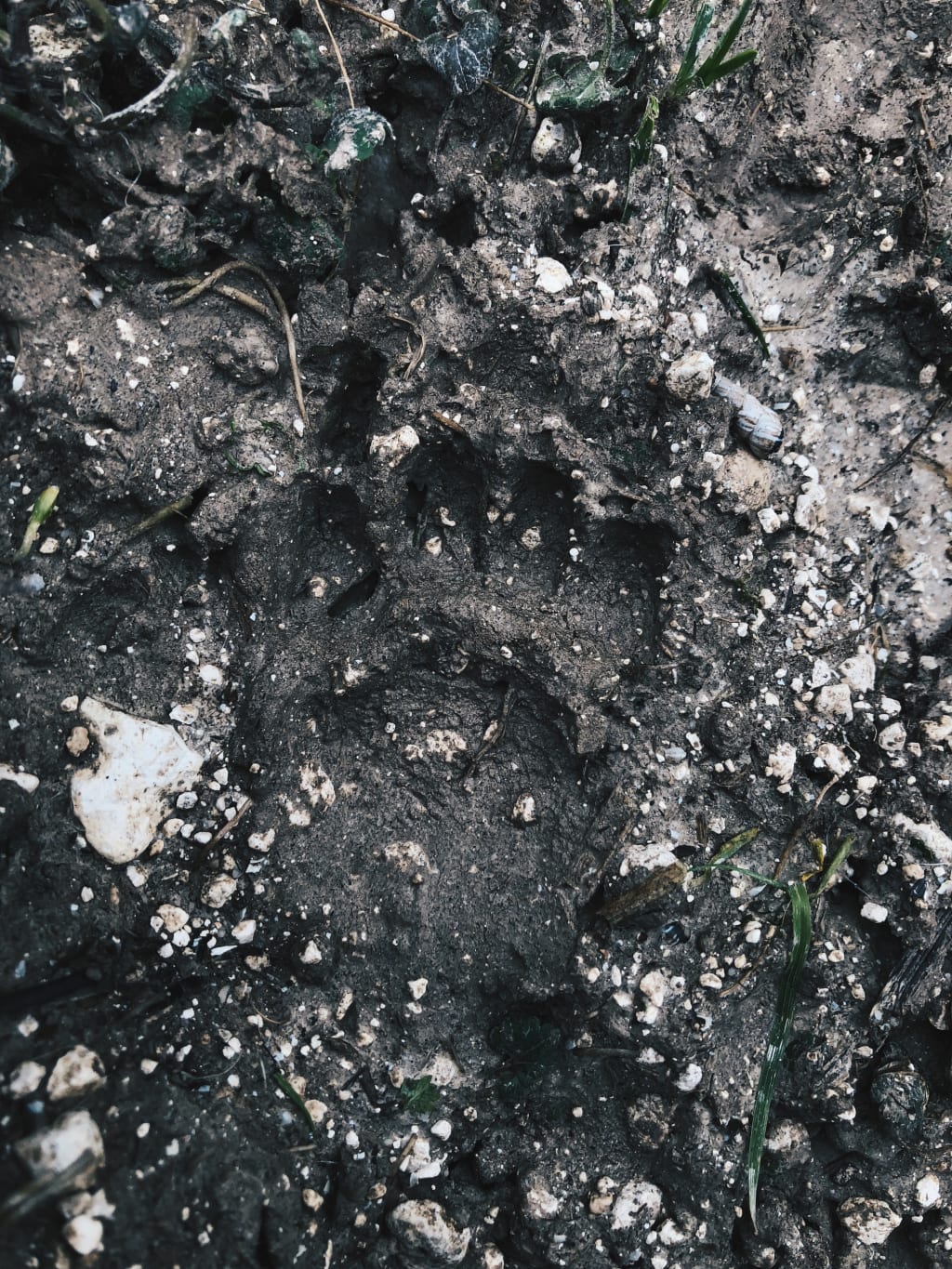 Badger foot. Their prints are ant canyons in the mud. Get up close and smell the earth as if it were the last time you ever will.