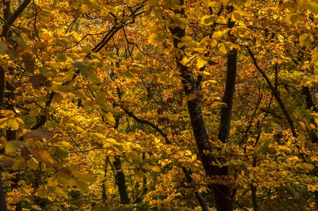 Golden leaves flutter,