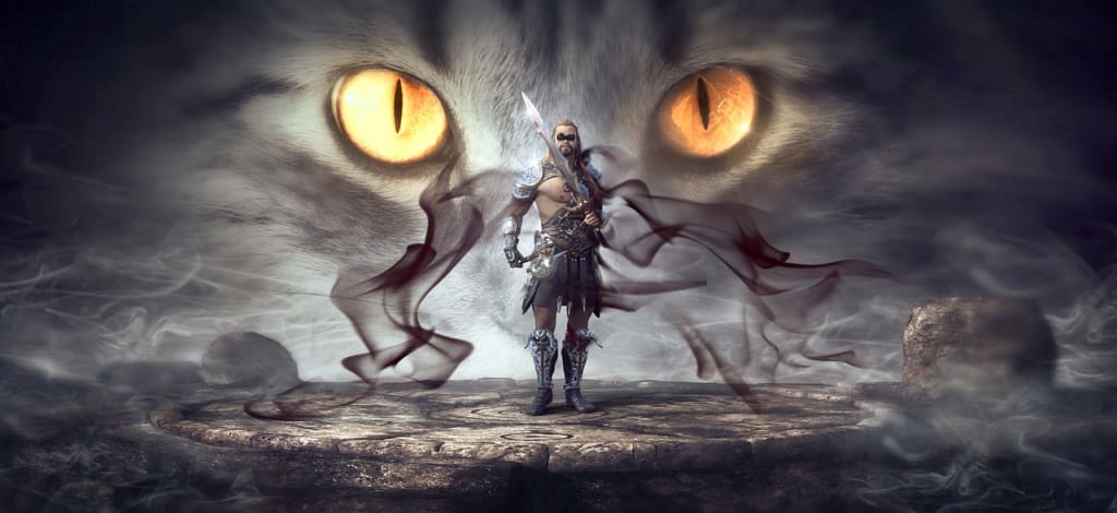 Na-na-na-na-na-na-na-na, Na-na-na-na-na-na-na-na, Cat-Man! Na-na-na-na-na-na-na-na, Na-na-na-na-na-na-na-na, Cat-Man! Cat Man! Cat Man! Na-na-na-na-na-na-na-na, Na-na-na-na-na-na-na-na, Cat-Man! Conan the Barbarian meets Batman with a different familiar.