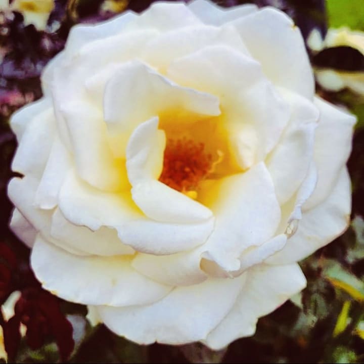 A white rose opening in its imperfections perfectly.