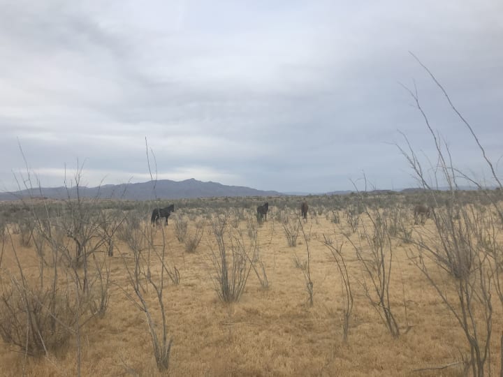 In the middle of the dessert, letting things go before the rising sun.