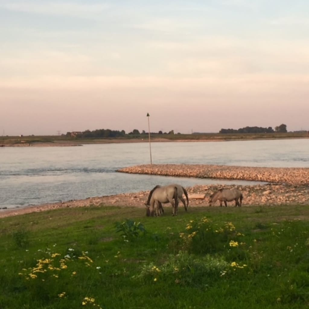 Photograph of Konik horses--wild horses--grazing by the River Waal in the Netherlands