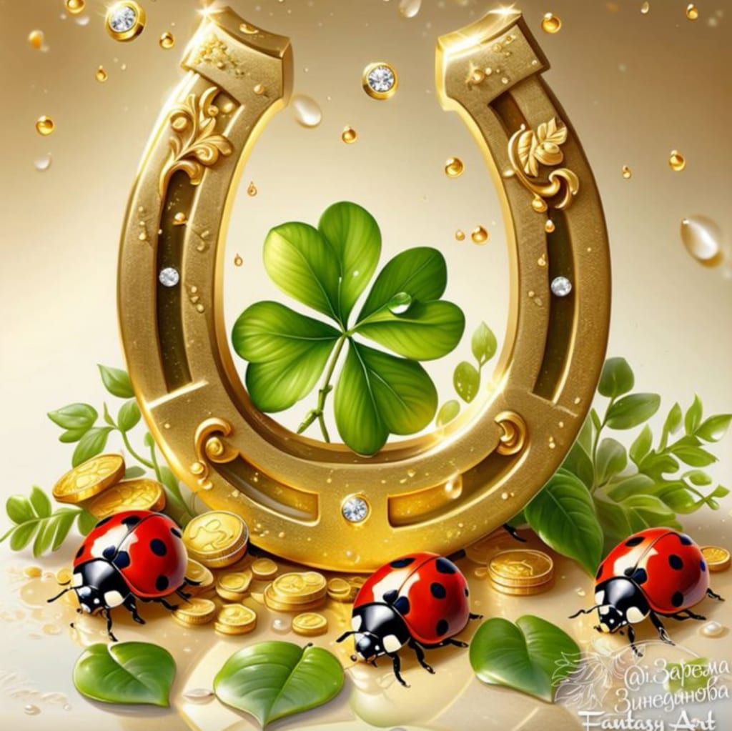 In a horseshoeās curve, a clover rests,