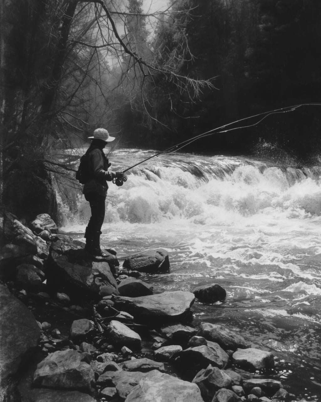 then those tricky trout escaping, swimming downstream.
