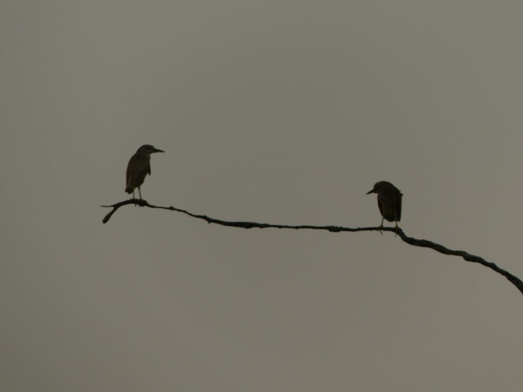 night herons hurl themselves at the water’s surface