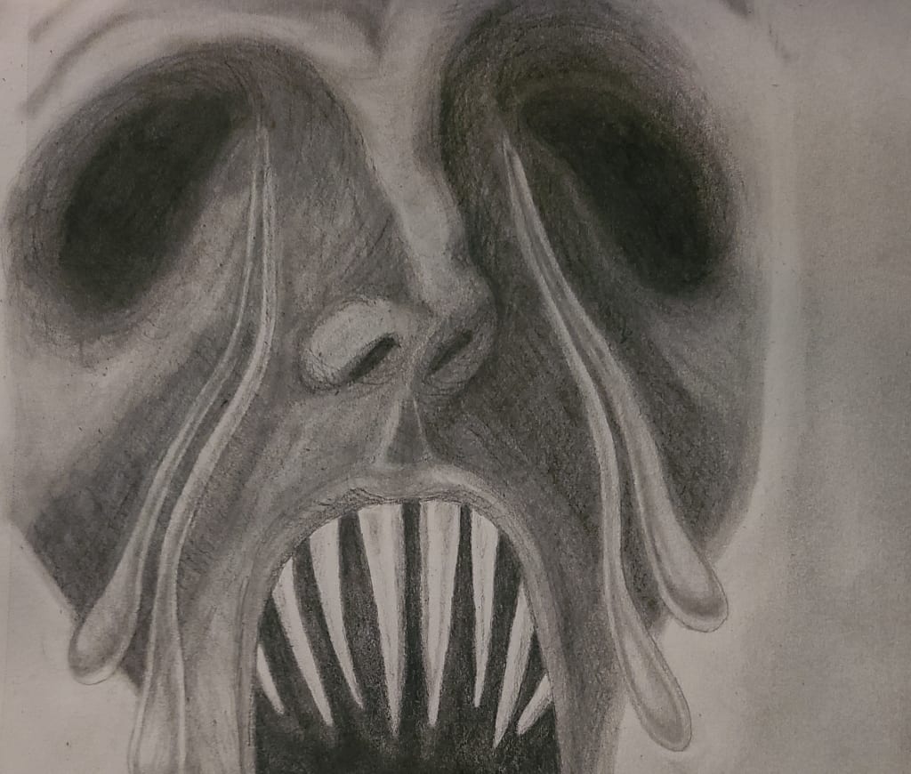 His teeth glint. I’m not scared, he has my father’s teeth.
