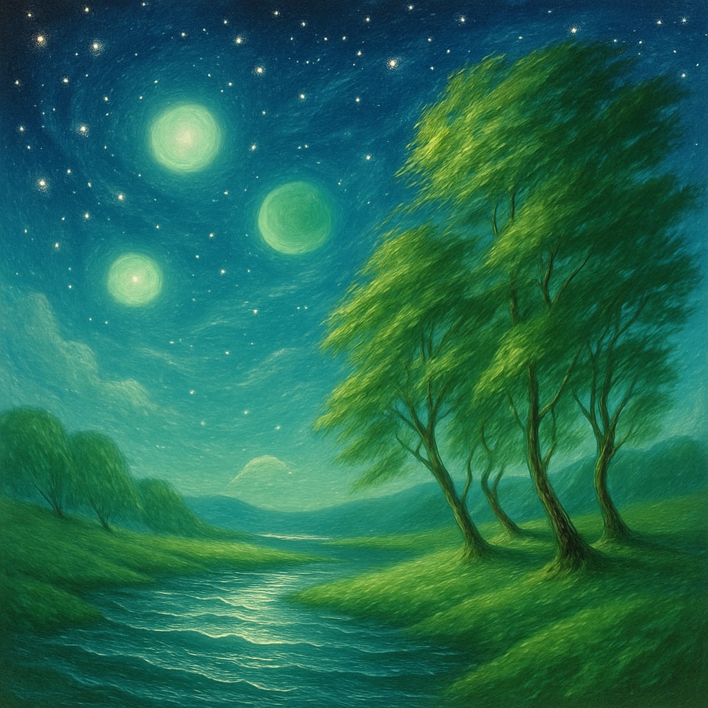 Layers stars sky green greeness all around in the air