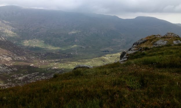 If you had noticed the gate set into the low hawthorn hedge to your right. You wouldn’t have paid attention to the appearance of the gate itself. It is fairly nondescript. Just a five-bar, wooden gate, strung with spider-webs, plucked at by the wind. You almost expect this to sound like an orchestra. An orchestra of spider-webs. But they make no sound.