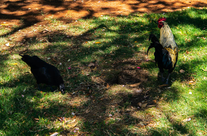 But if you don’t like to wait, you can use some of your wait time to cross the street and check out the park, which has many hens and roosters as residents. Watching them run around the park always makes my day!