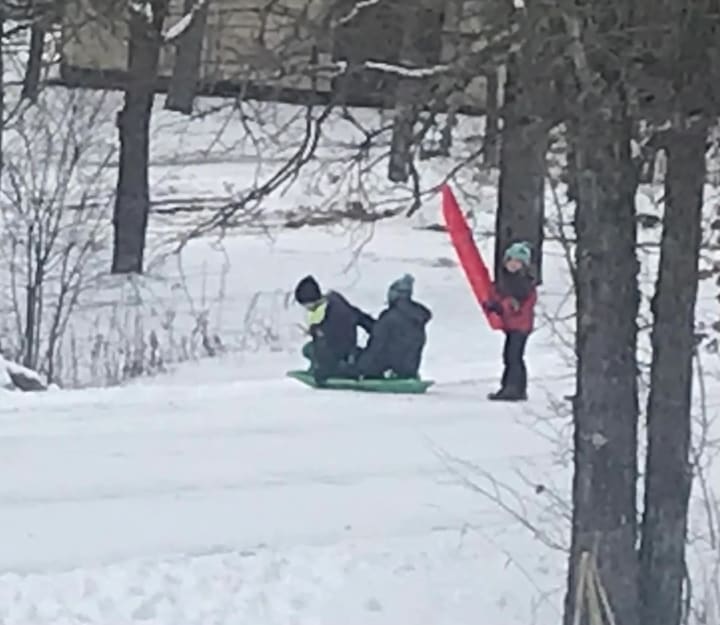 Children out in the snow sledding,
