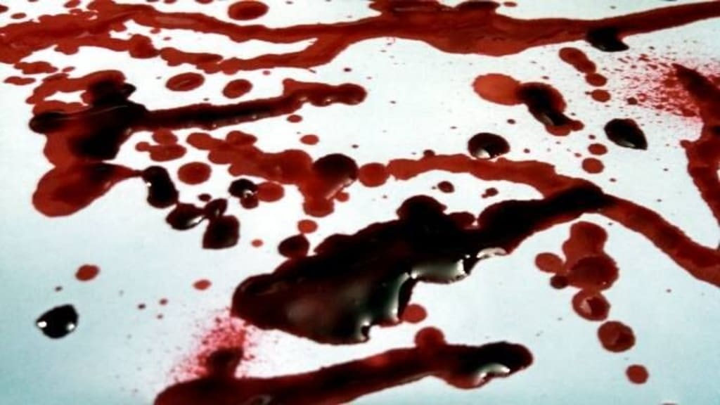Syringe filled with vodka in an arm with so much BLOOOOD!