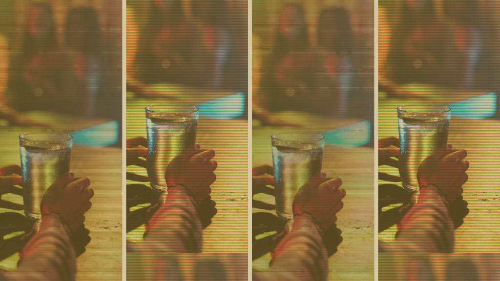 Liquor-tinged ice rattles against my teeth: drip, drip, drip.