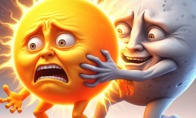 Expressive eyes of the Sun goddess Could melt a mortal who dares to look Legions of gods and goddesses fall for her In Love, In Lust, In a Daze Powerful warmth and radiance they seek Sometimes she welcomes the Moon goddess to dance with her Earthlings call this dance a “SOLAR ECLIPSE”