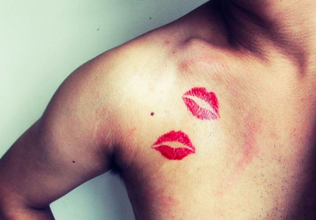 Lipstick hearts haunt her thoughts. Their dark red hue stark on the tan skin of another.