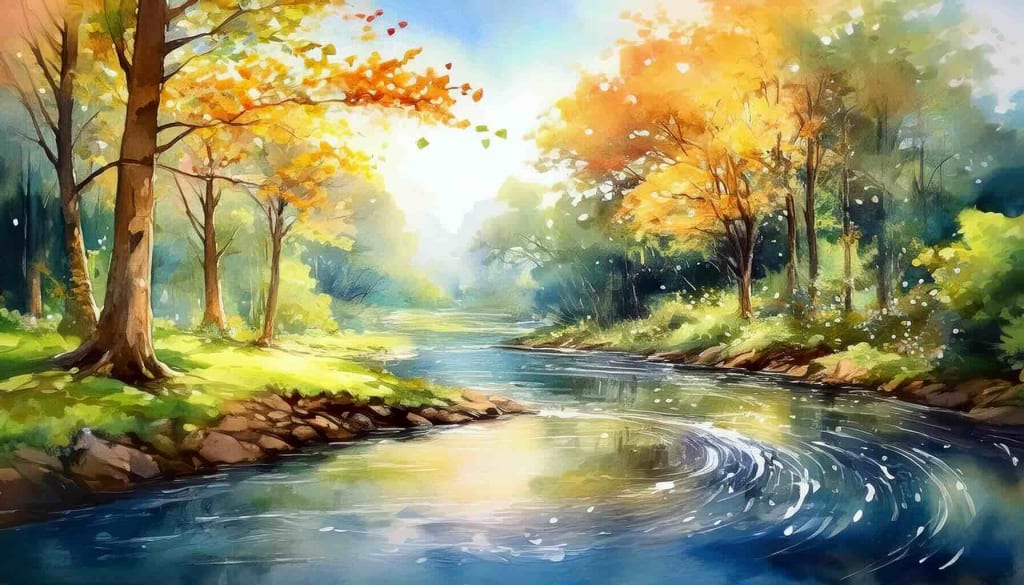 Sunlight dances on rippling streams,